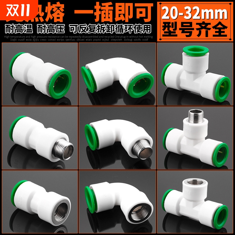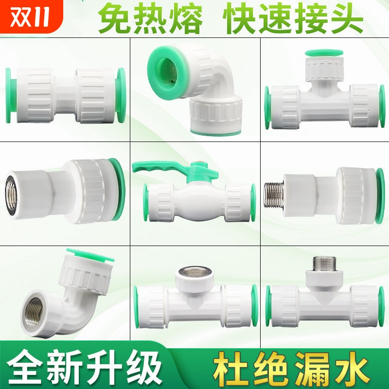 PPR免热熔快速接头32 25球阀PVC弯头快插三通PE水管配件