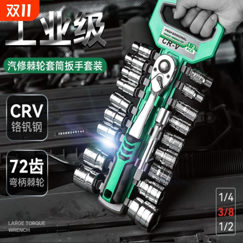 快速套筒棘轮扳手大中小飞双向万用汽修工具扳工业级72齿家用