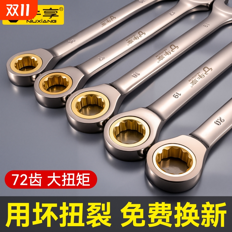 快速双头双向棘轮扳手半自动梅花扳手两用梅花呆扳手汽修五金工具