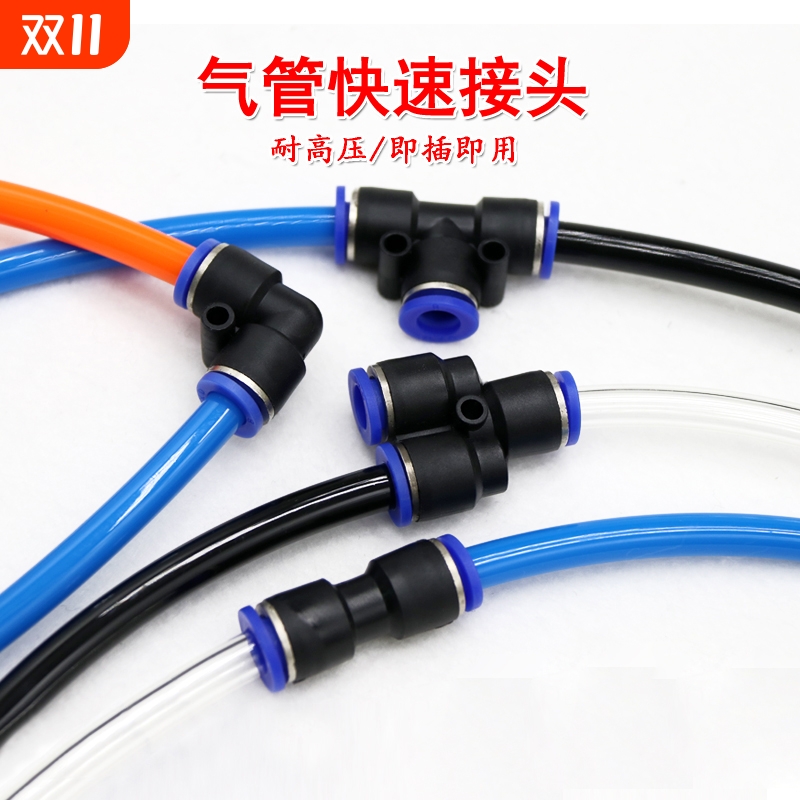 气管快速接头PU直通PE三通PY46/8/10/12mm弯头变径