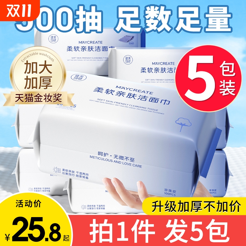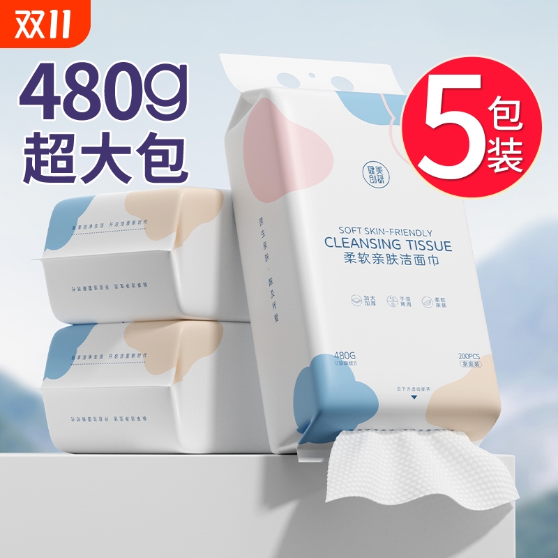 5包装|健美创研洗脸巾一次性擦脸不掉毛纯棉洗面洁面巾官方旗舰店