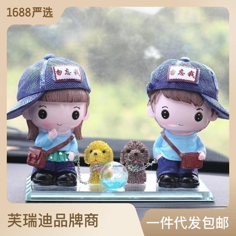 创晶意卡通牵狗情娃水娃香水座汽车中控台香侣薰香氛摆件除异味