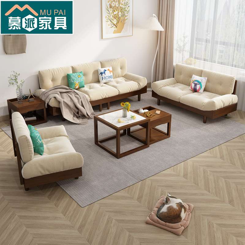 云朵沙发实木布艺意式极简小户型客厅家具原木奶油风双人现代简约