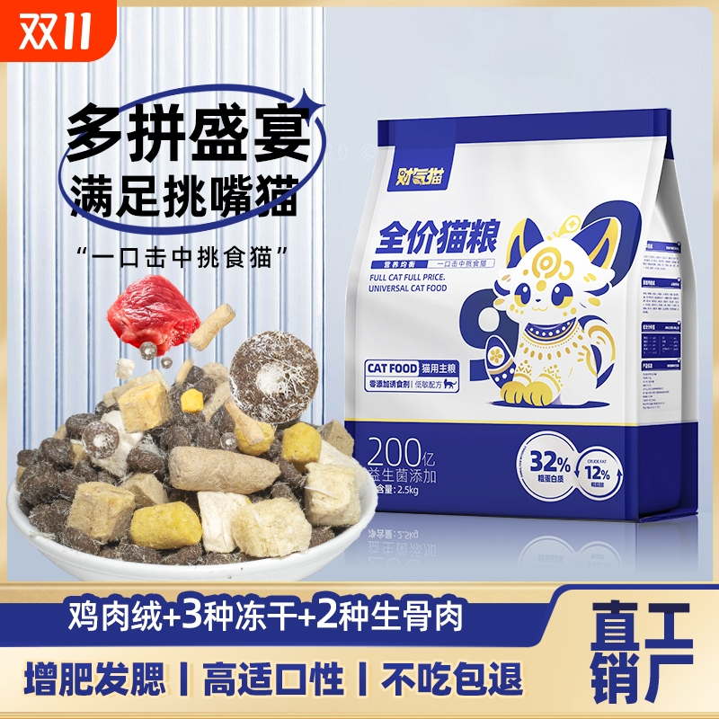 财气猫冻干全价猫粮高蛋白营养成猫幼猫流浪经济猫咪粮食通用型