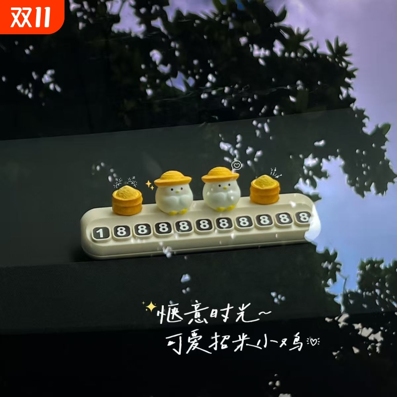 招米小鸡挪车电话牌停车号码牌临时汽车车载中控台可爱摆件移车牌