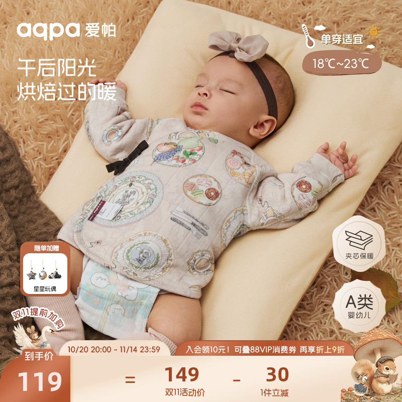 [午逅时光]aqpa爱帕婴儿夹棉半背衣初生婴儿保暖秋冬新生宝宝上