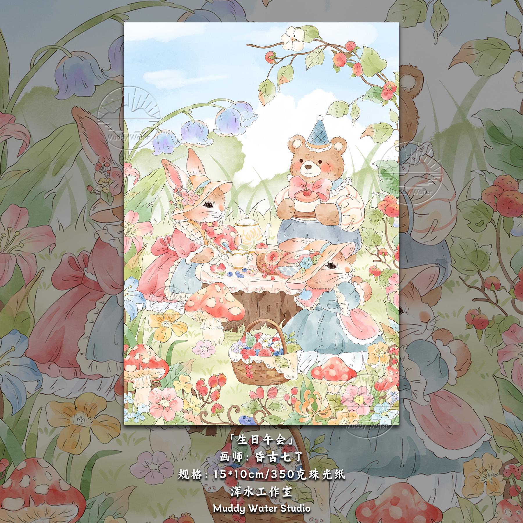 「生日午会」原创插画明信片手绘小众珠光创意手绘