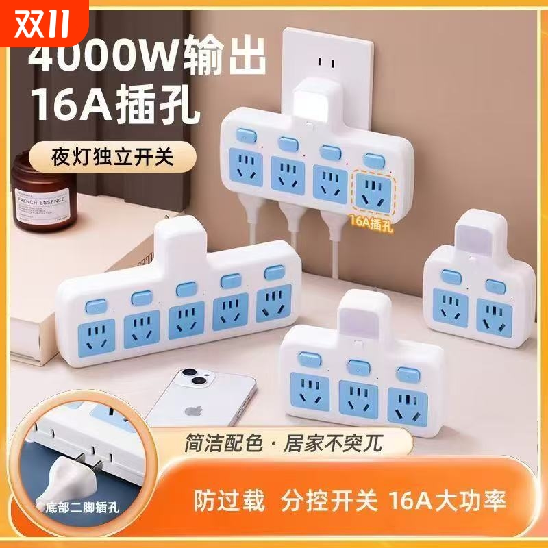 午开关多功能一转排插板插座无线转换器USB多孔多插位大功率充电