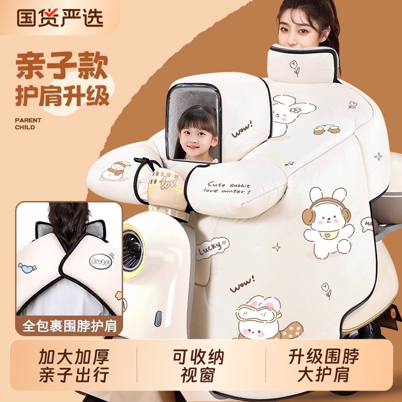 电动车挡风被亲子款冬季加绒加厚电瓶摩托车儿童防雨风罩四季通用