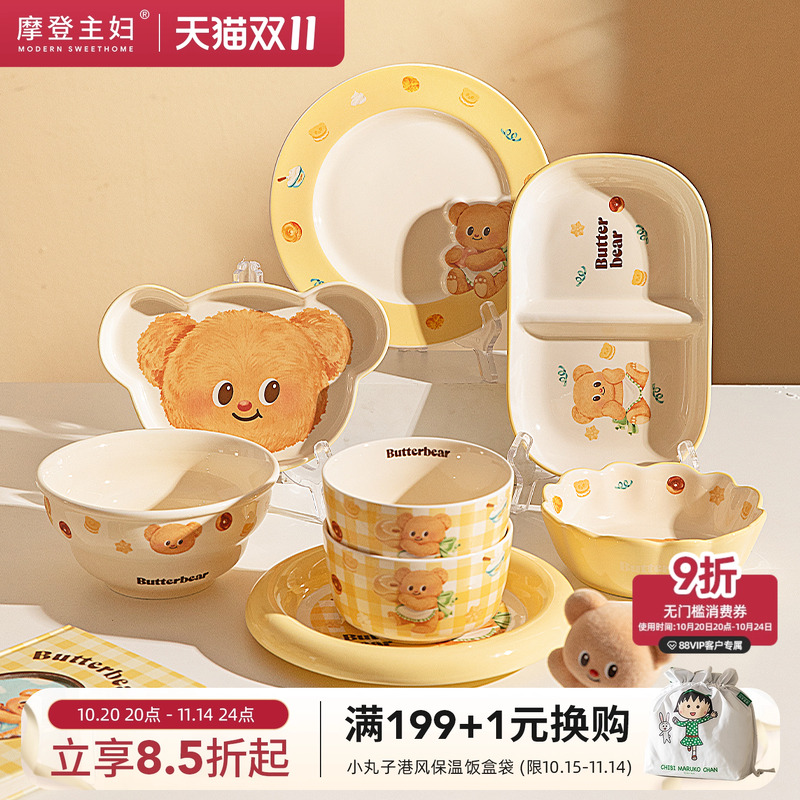 摩登主妇黄油小熊釉下彩碗盘餐具