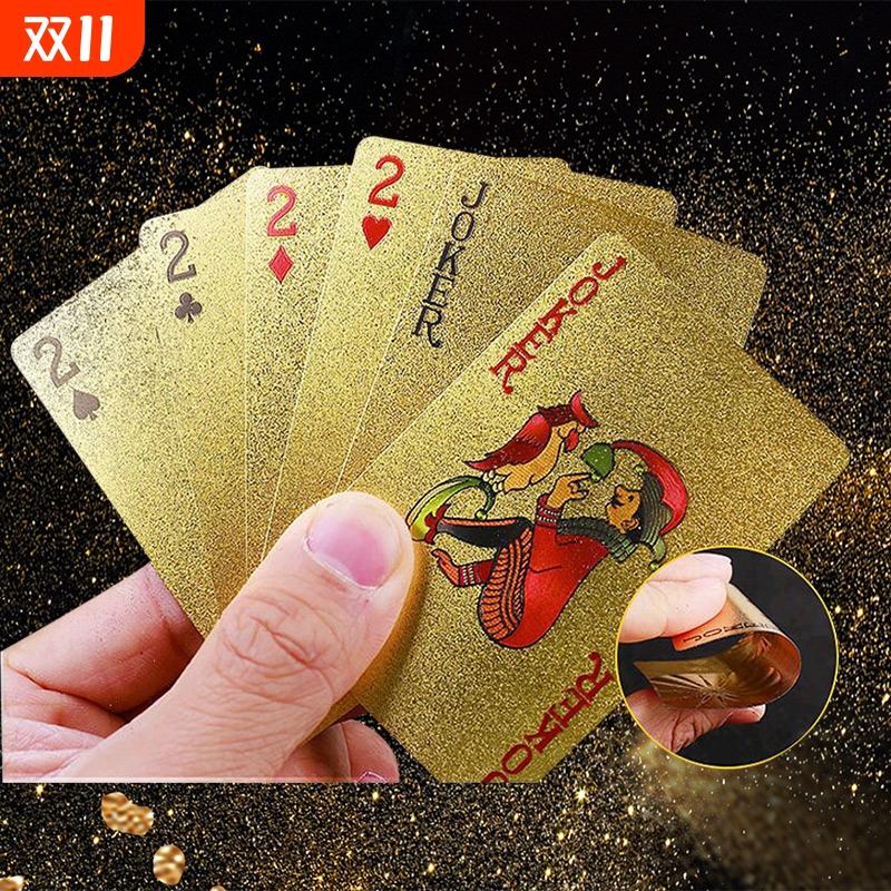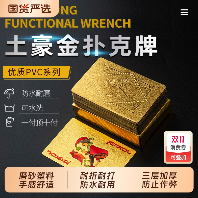 扑克牌PVC塑料扑克防水黄金色朴克掼蛋专用金属创意加厚纸磨砂