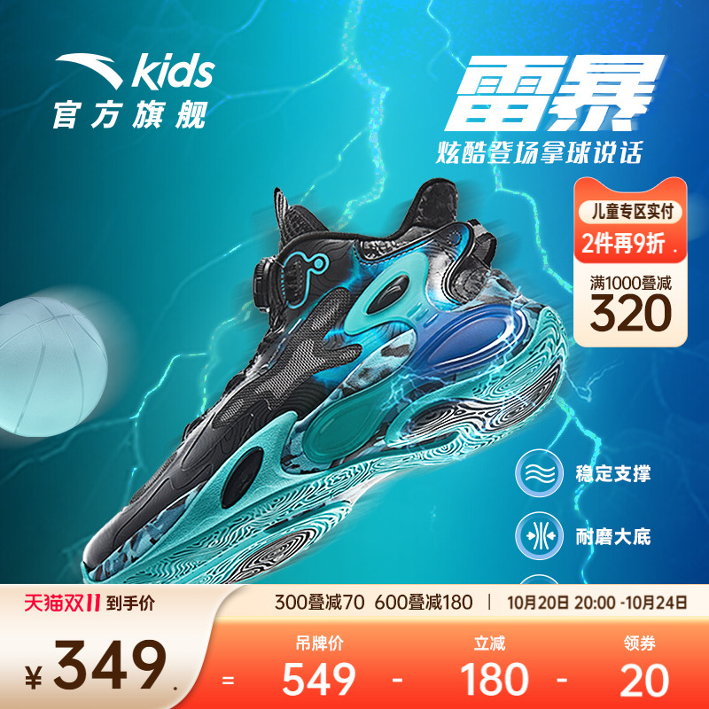 安踏儿童雷暴篮球鞋男童抗扭舒适防滑耐磨外场运动篮球鞋高帮旋钮