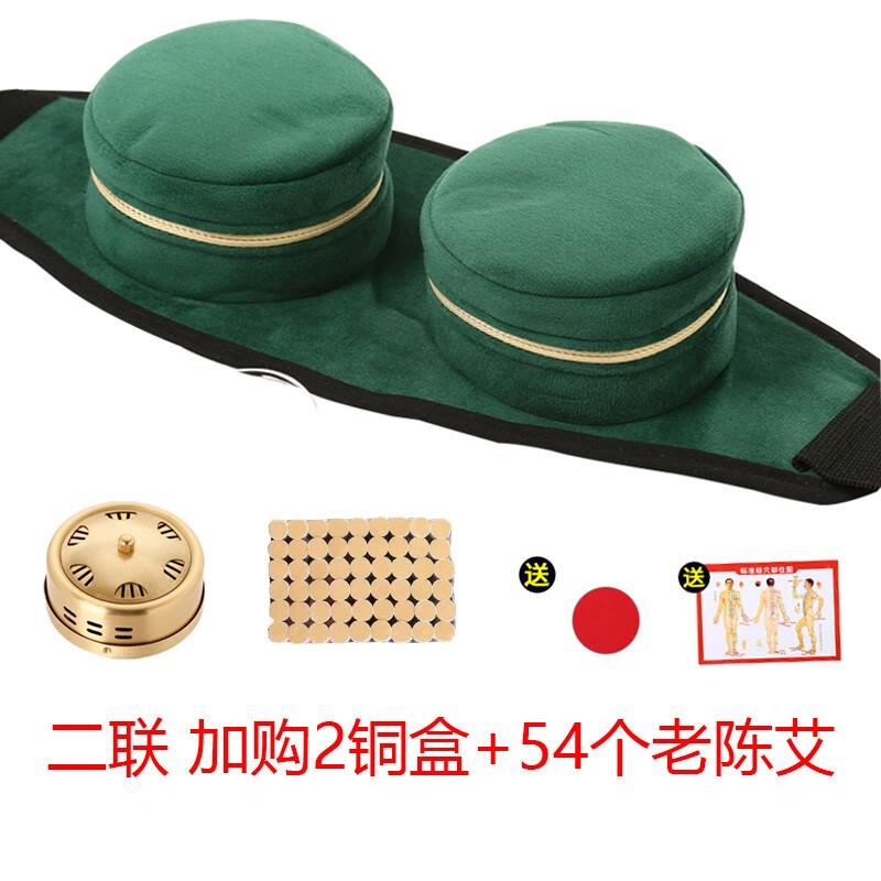腰部腹热敷腰带温灸熏蒸仪器不锈钢艾灸盒套装四连包随身灸具 绿
