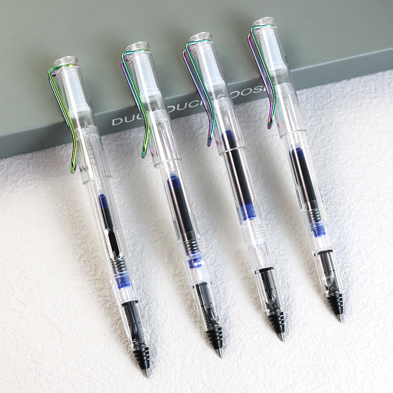 简约透明子弹头走珠笔宝珠钢笔式中性笔学生书写用可替换墨囊钢笔