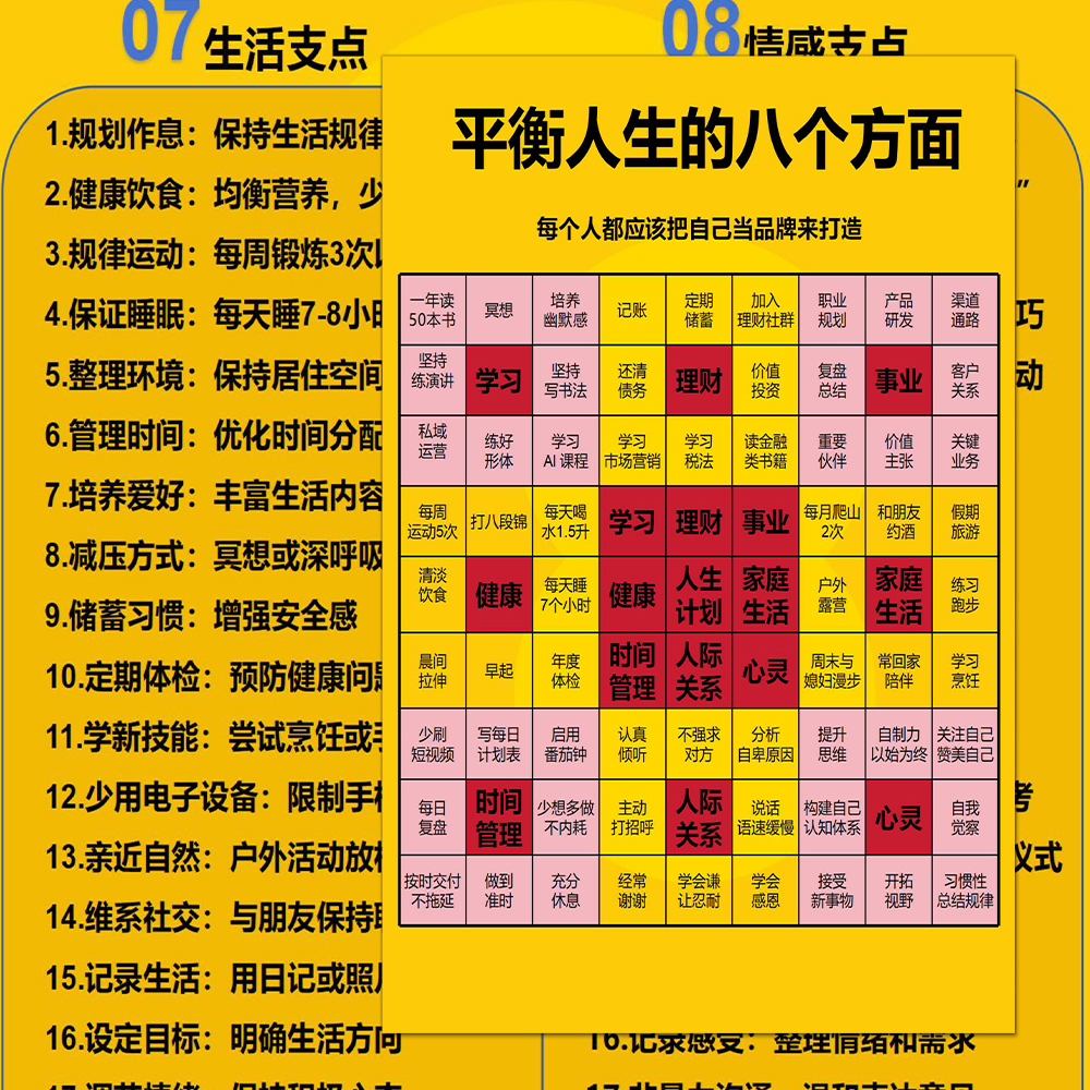 平衡人生的八个方面稳定内核个人成长人生支点提升学习大张贴画
