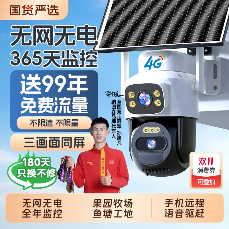 监控摄像头奥克斯家用4G终身免费流量无需wifi网络手机远程室内