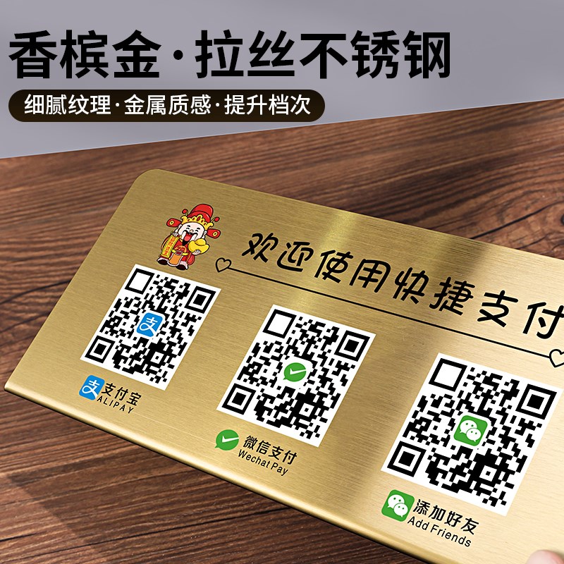 现货速发不锈钢二维码展示牌收款码收付款收银台收钱摆台支付宝付