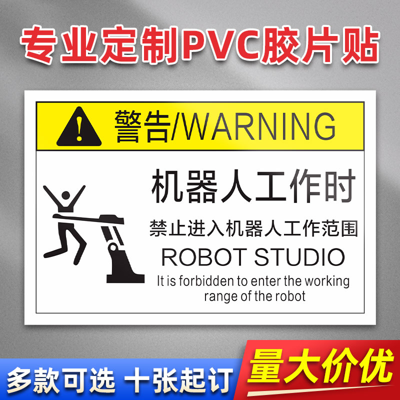 机器人工作时PVC贴胶片贴标签不干胶定免费制安全标志设备警示贴提