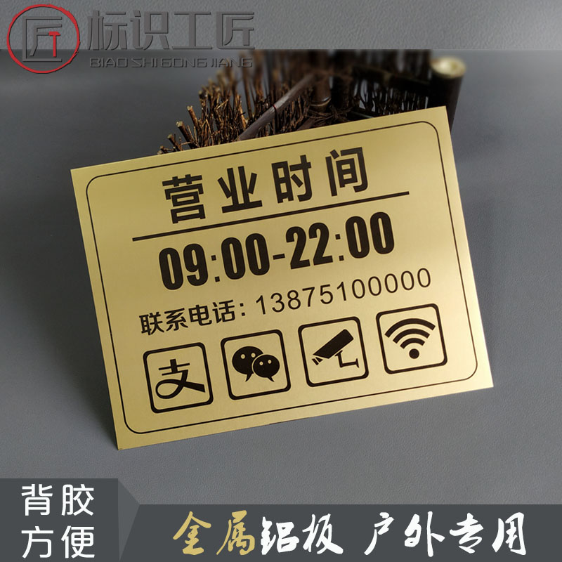 上班时间牌店铺营业时j间牌玻璃贴创意商场制做挂牌门贴提示牌定