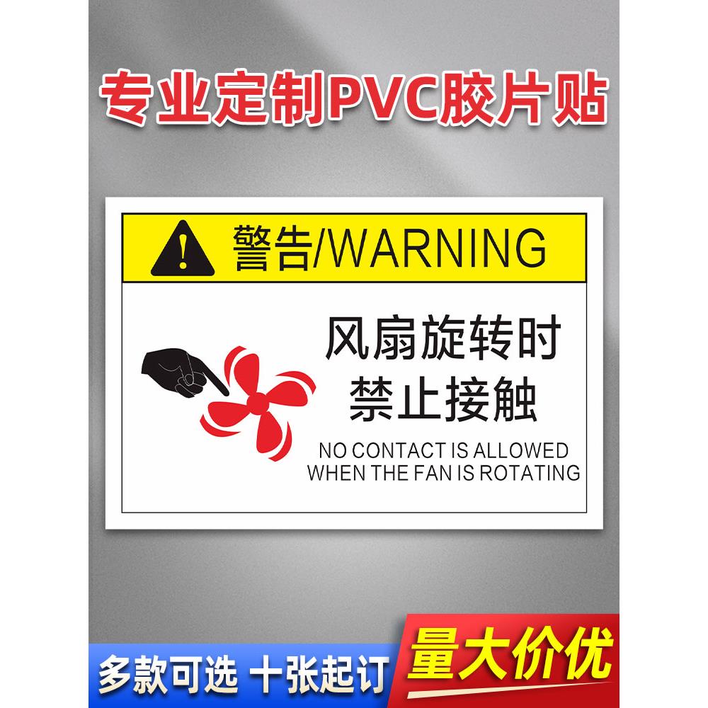 风扇旋转时-禁止接触FK-53 PVC贴胶片贴标签不干胶定免费制