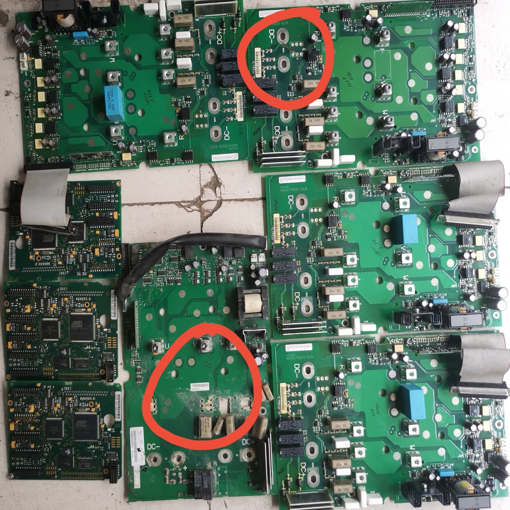 爆力拆下伟肯变频器板子,两个驱动板有明显破损,三个驱动板无