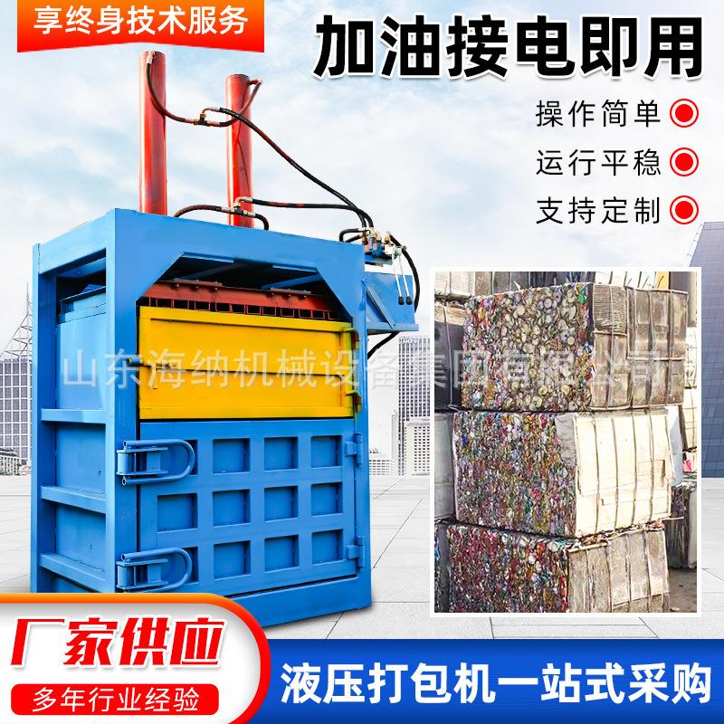小型液压打包机废纸箱编袋100T塑料瓶易拉织塑薄罐膜立式料液压打