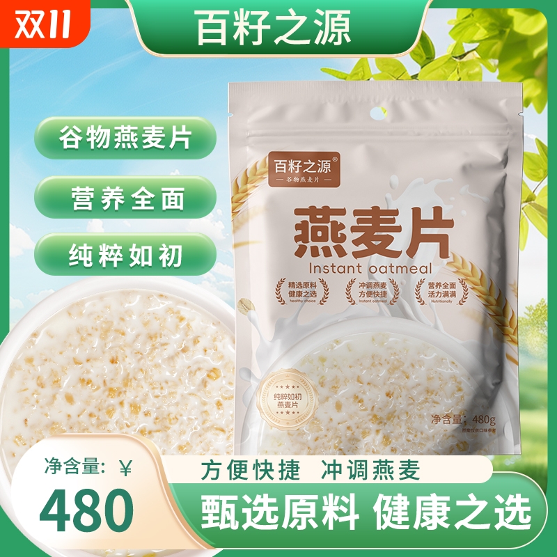 百籽纯生燕麦片需煮纯麦片袋装480g非即食原味生燕麦早餐冲泡谷物