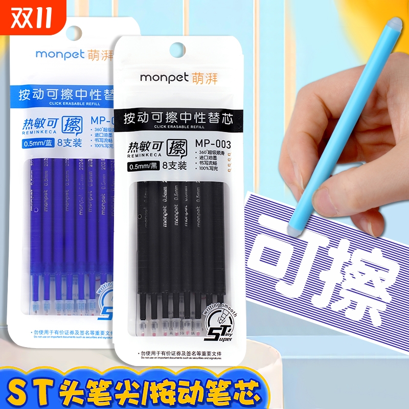 款款ST头按动式热可擦笔芯晶蓝色3-5年级小学生用黑魔力檫笔芯葫