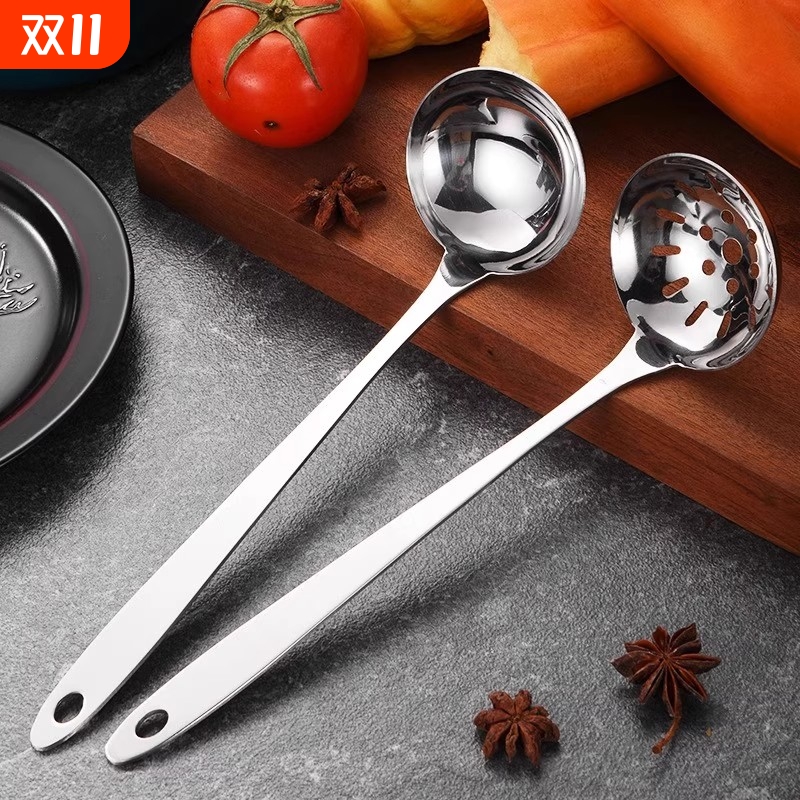 304盛汤不锈钢汤勺家用漏勺加厚长柄勺子厨房火锅餐饮挂钩大汤