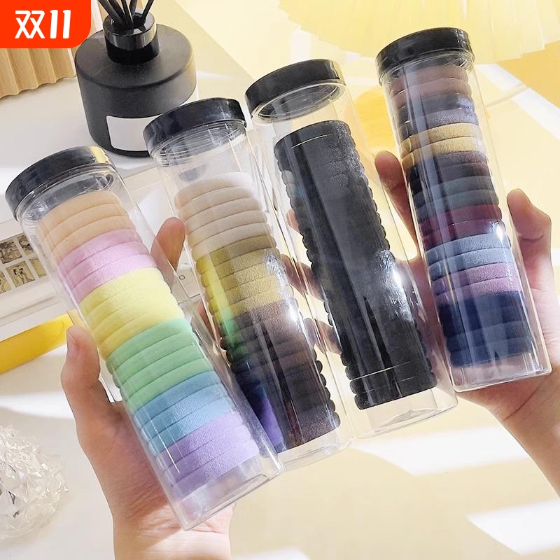 甜美黑色桶装20根橡皮筋发绳毛巾圈发饰头绳马尾无接缝发圈发饰女