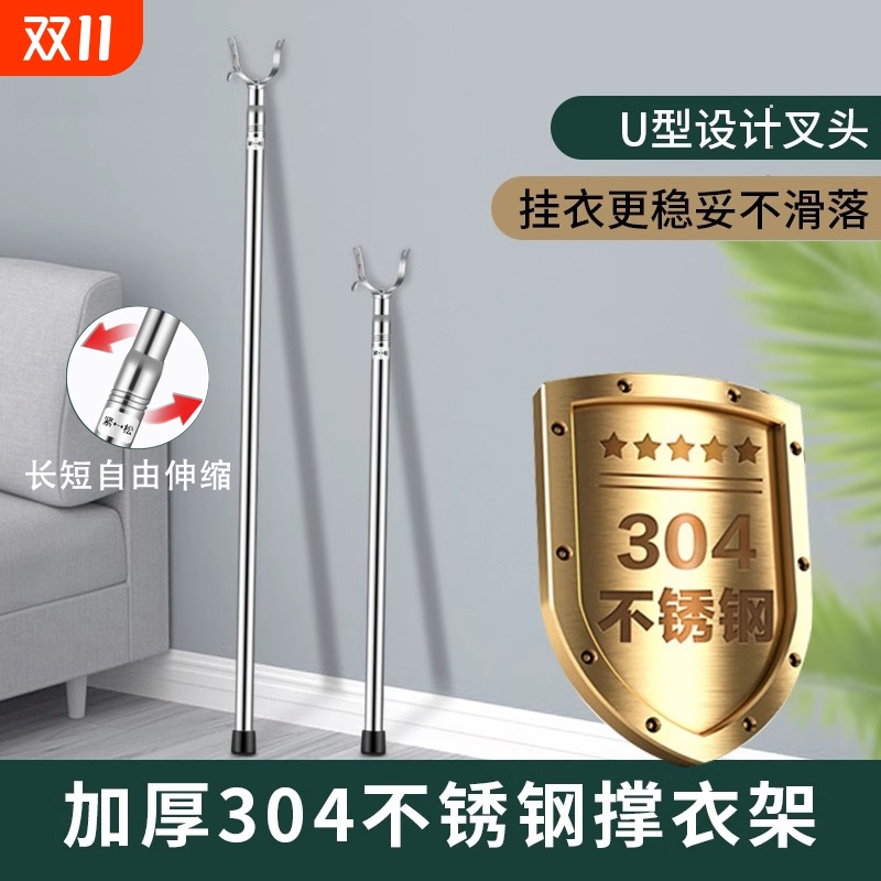 晾衣杆伸缩撑衣杆家用一根晒衣服的撑杆凉取衣架挂杆子宿舍衣叉挑