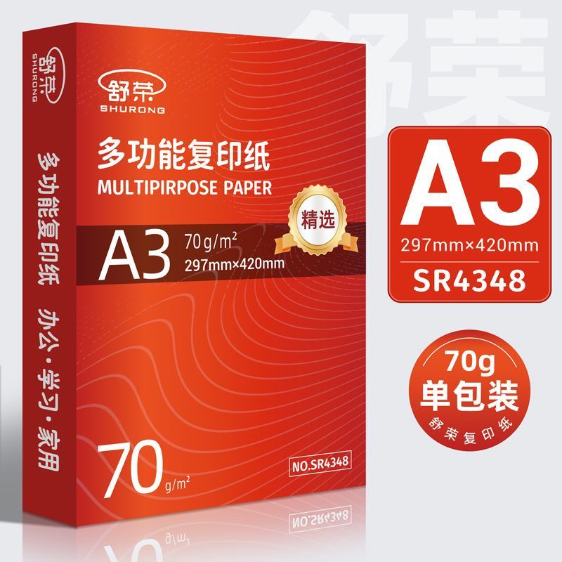 舒荣a3纸学生打印复印纸a3打印纸白纸试卷纸整箱批发草稿纸绘画纸