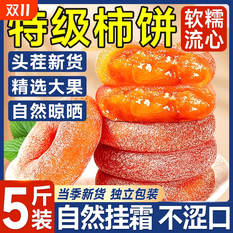 农家柿饼霜降流心圆柿子饼独立包装非富平吊柿整箱5斤批发新鲜