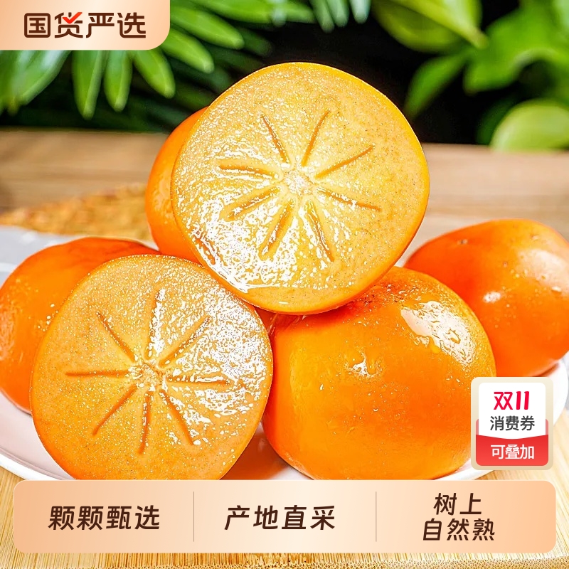 陕西火晶柿子新鲜现摘当季水果15粒起软甜可口水晶小柿子