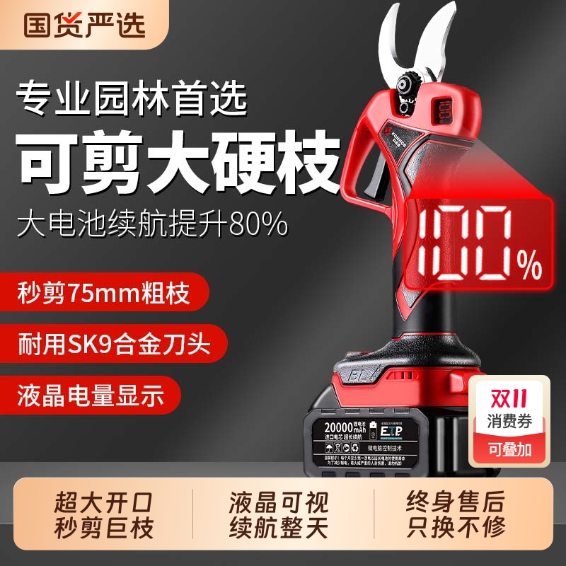 电动修枝剪刀充电式园林果树修枝剪剪树枝锂电树枝专用剪剪枝神器