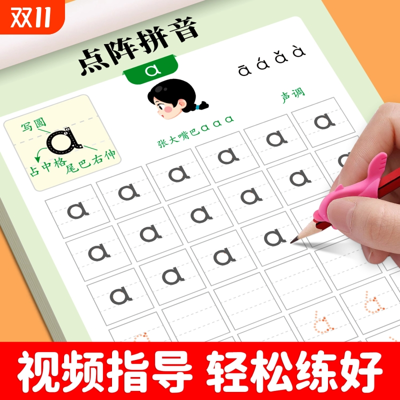 儿童拼音练字帖数字笔画笔顺点阵控笔训练偏旁部首英语幼小衔接田字格