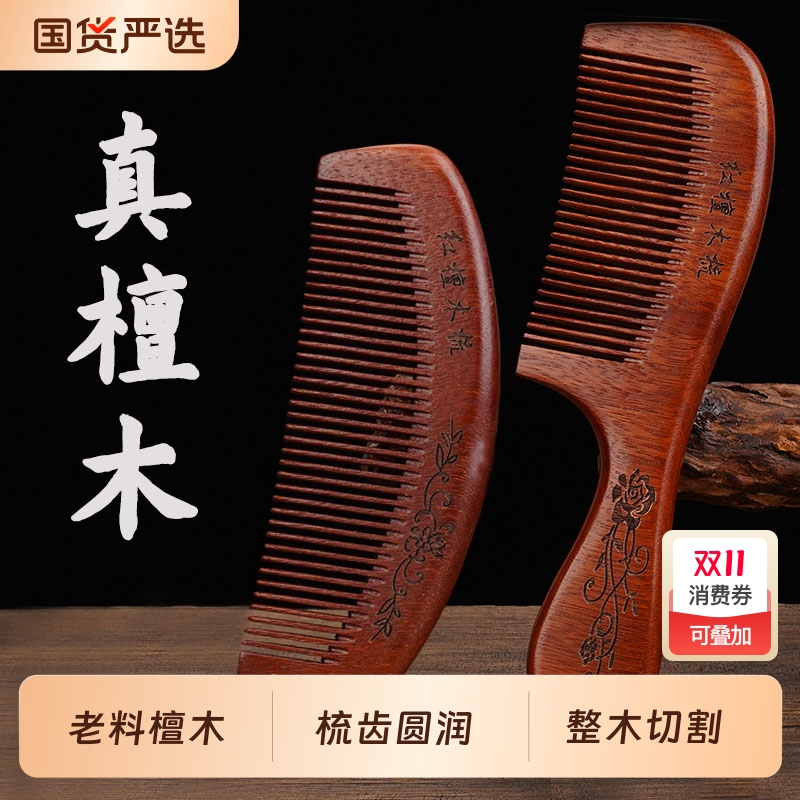 天然老檀木梳绿桃木梳子家用木头静电脱发正品防男士女士长发专用