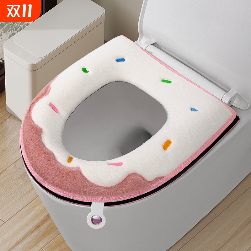 水蜜桃加厚马桶垫秋冬家用拉链式防水保暖可水洗马桶套毛绒加绒
