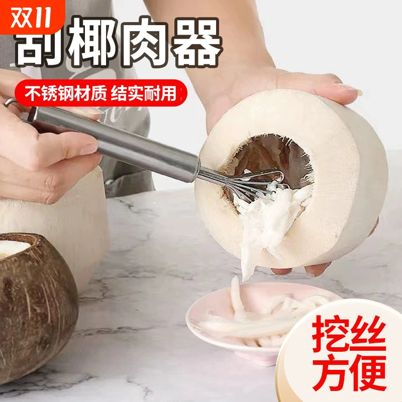 不锈钢椰子取肉器椰肉刨椰肉神器椰丝刨刮丝器椰青刨丝器椰皇开椰