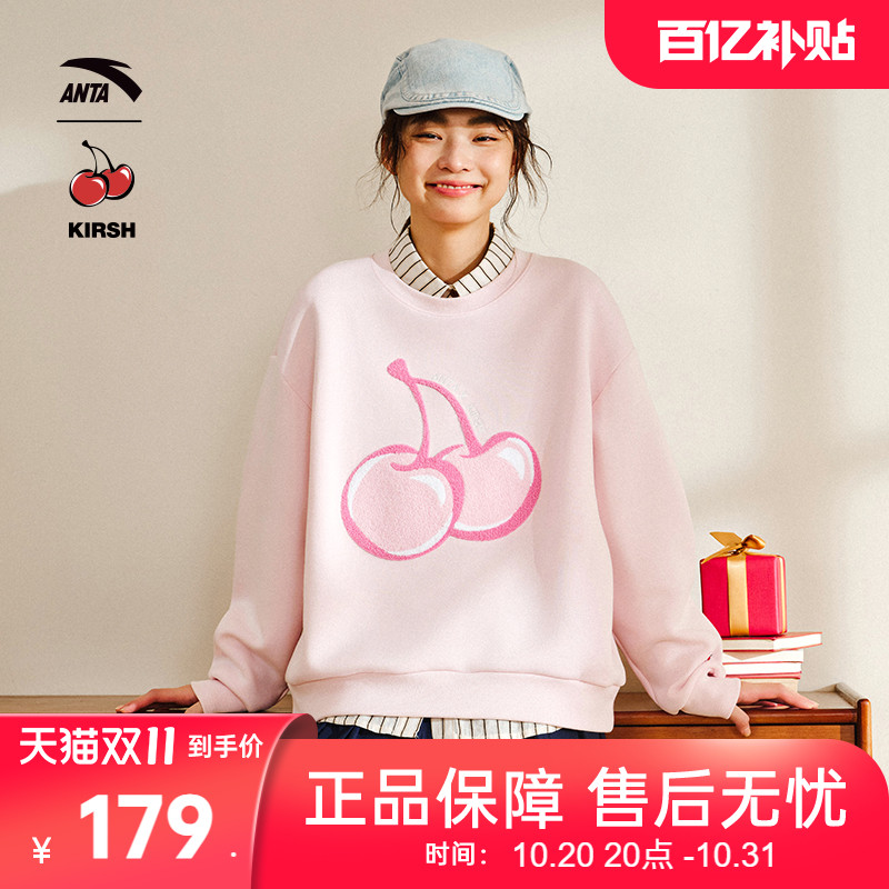 棵初全羊毛保暖撞色樱桃圆领毛衣