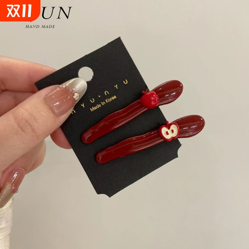 红樱桃发夹女刘海时尚百搭新款无痕小众发夹侧边夹设计发饰