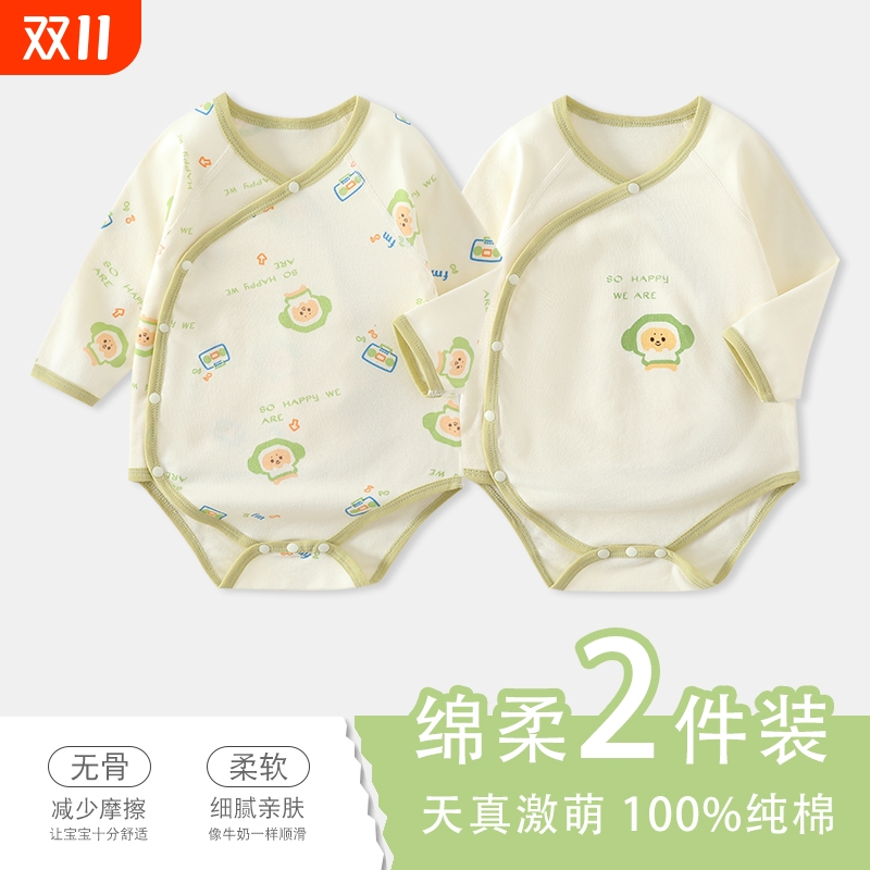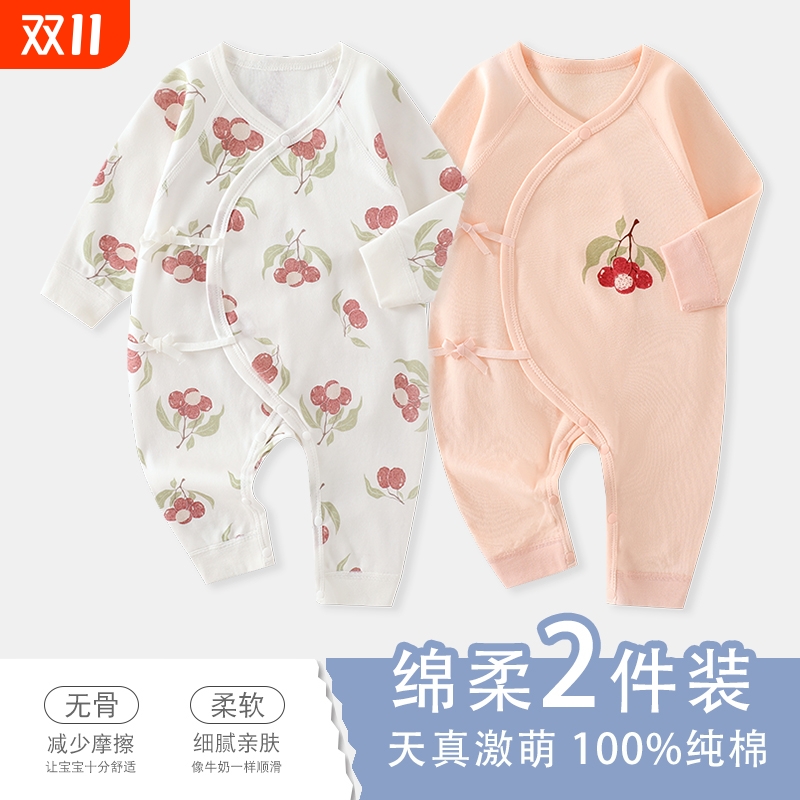 新生婴儿衣服春秋纯棉连体衣满月宝宝长袖护肚蝴蝶衣打底睡衣母婴