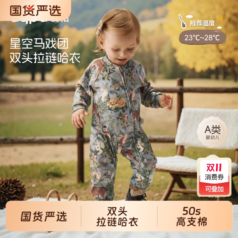 星空马戏团aqpa爱帕宝宝秋冬新品长袖拉链侧开连体衣婴童母婴