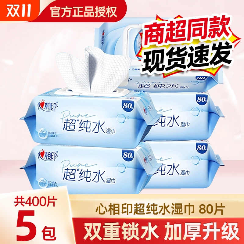 心相印湿巾超纯水大包80片家庭实惠加厚湿纸巾家用清洁母婴适用