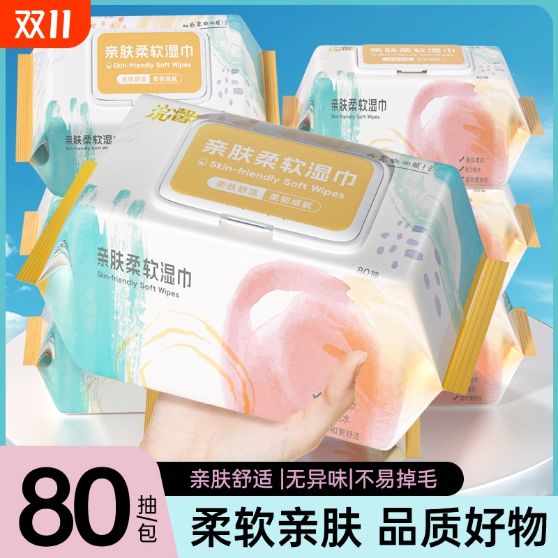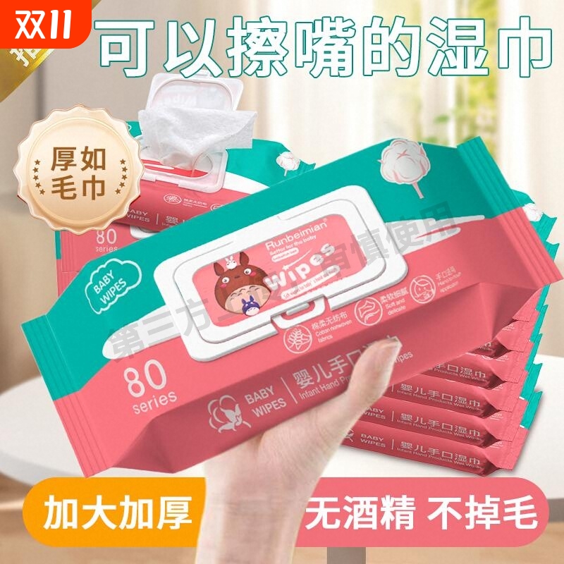 大包80抽擦脸儿童湿巾擦嘴加大母婴加厚手口屁湿纸巾纸抽家用实惠