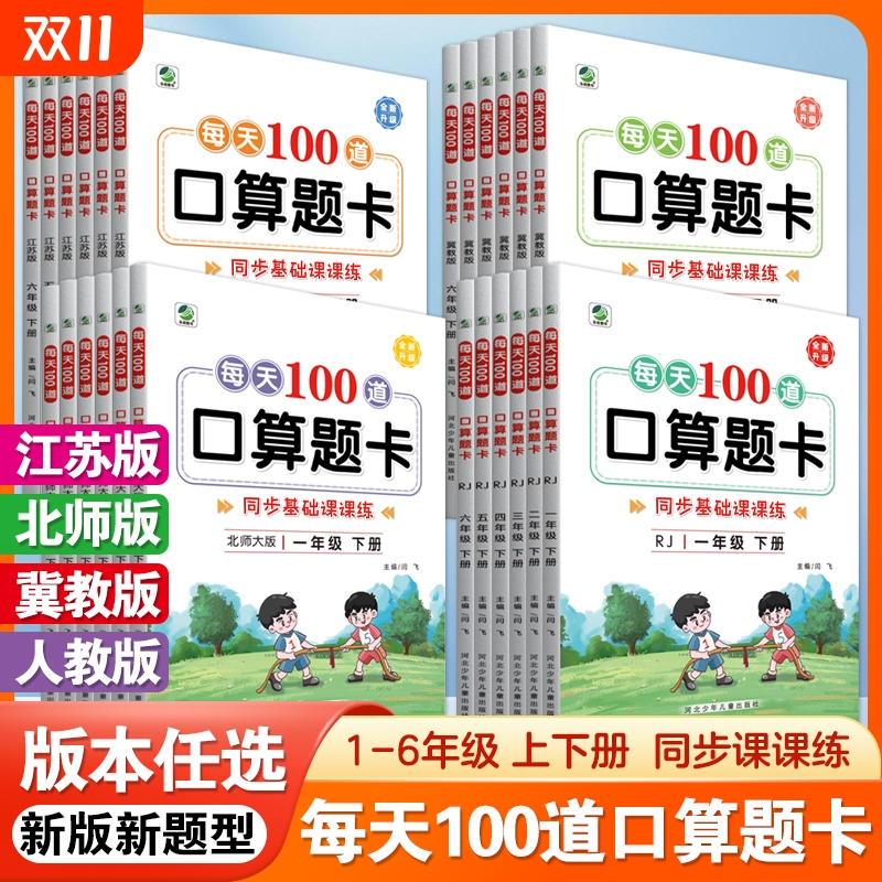 每天100道口算题卡人教版冀教版江苏版北师大版一年级二年级三年级