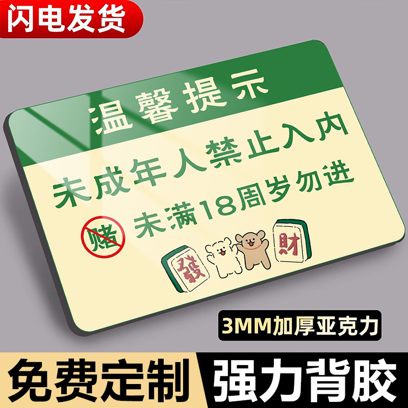 未成年人禁止入内标识牌禁止黄赌毒标识标牌棋牌娱乐禁止赌博提示牌麻