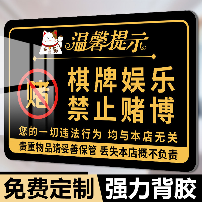 棋牌娱乐禁止赌博提示牌休闲贴纸娱乐禁止黄赌毒警示牌棋牌室警示标语