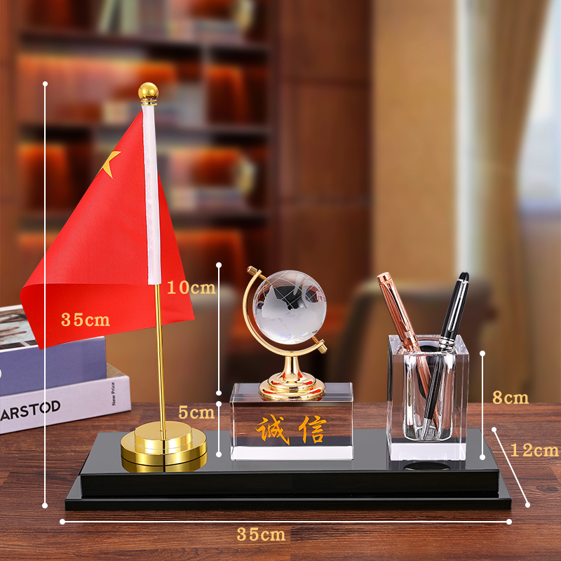 新品笔筒办公室桌面大气收纳摆件创意水晶地球P仪透明笔筒公司活