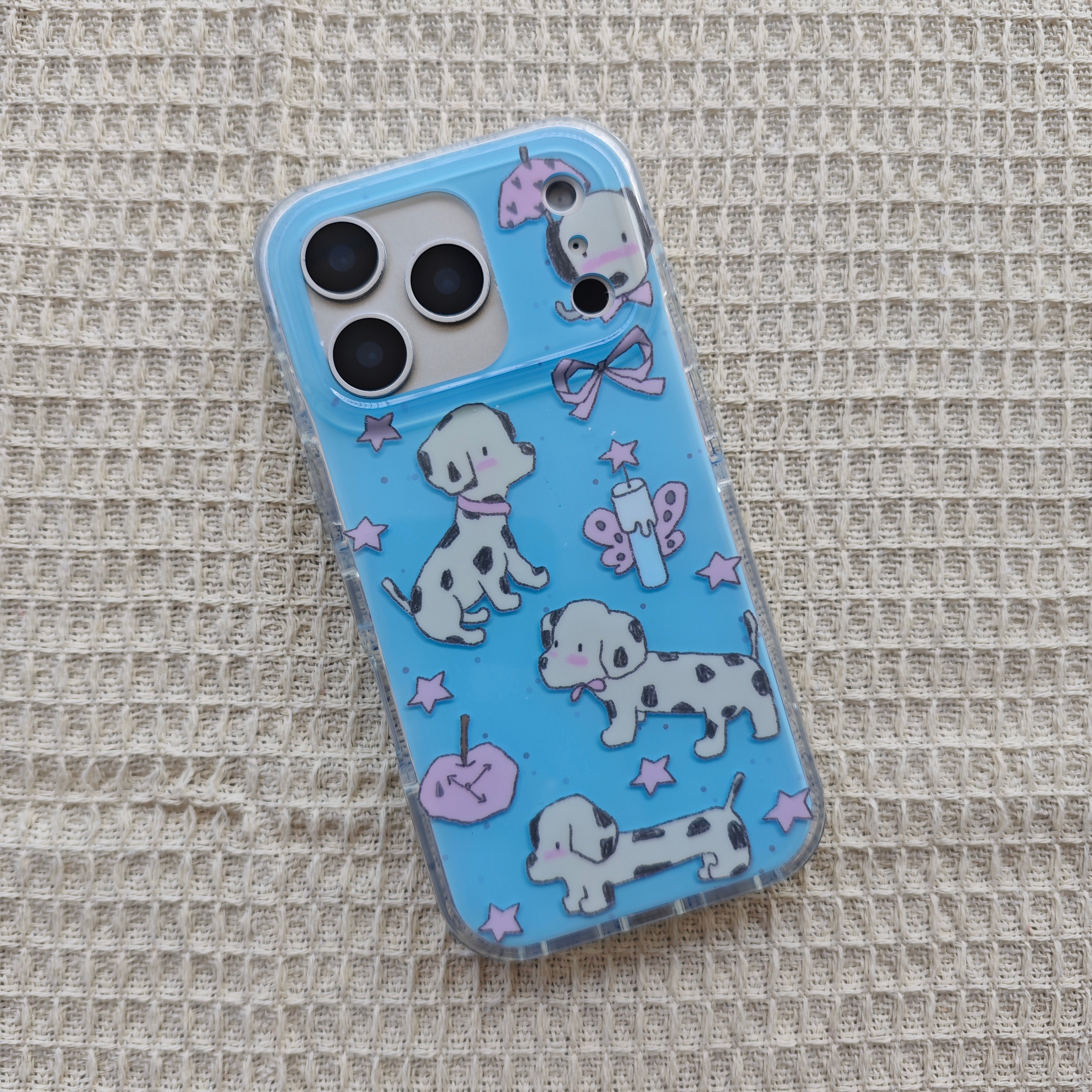 可爱蓝底蝴蝶结腊肠斑点狗手机壳